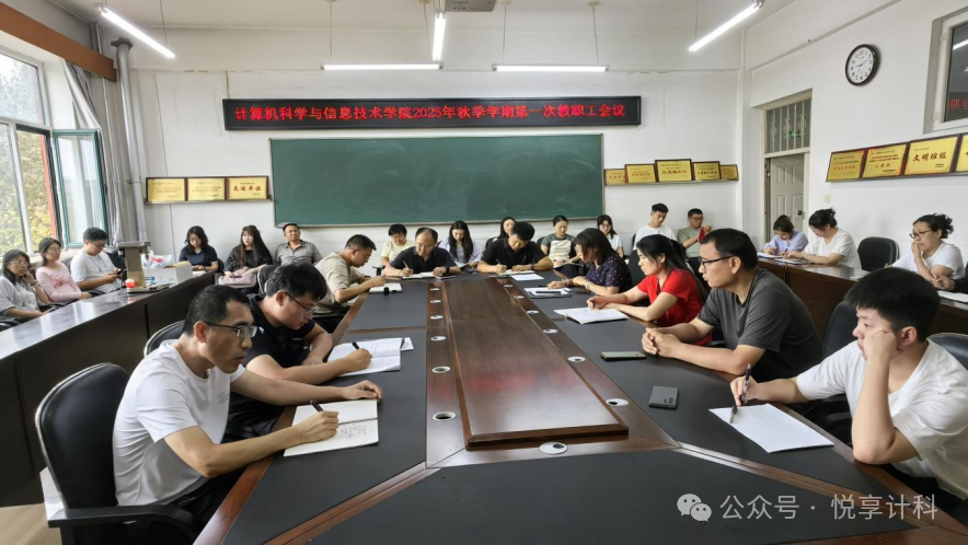 2025年8月31日上午,计算机科学与信息技术学院召开2025年秋季学期第一次全体教职工会议,全面总结上学期工作,部署新学期重点任务。学院领导班子及全体教职工参加会议。