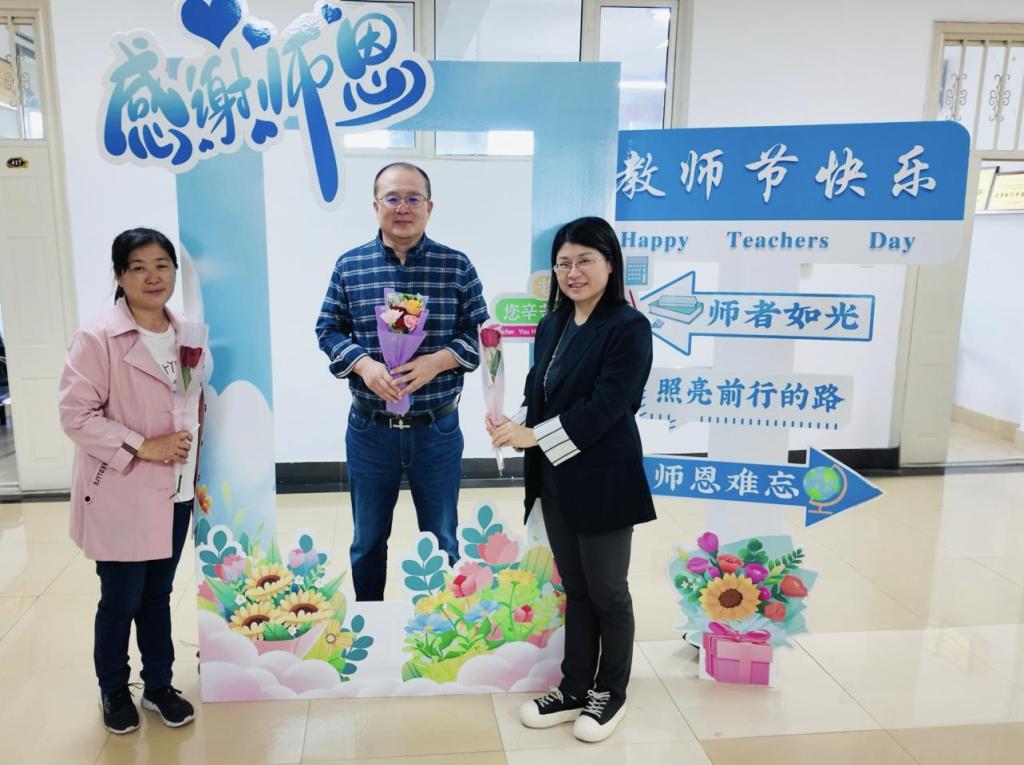 学院打造了主题鲜明的教师节打卡点,打卡板上的祝福语表达了学院对全体教师的节日问候,传递出尊师重教的浓厚氛围。全体教师积极参与,在打卡点前驻足拍照,定格属于教育工作者的荣耀时刻,用轻松愉悦的方式感受学院的关怀与祝福,进一步增强了教师群体的归属感与幸福感。