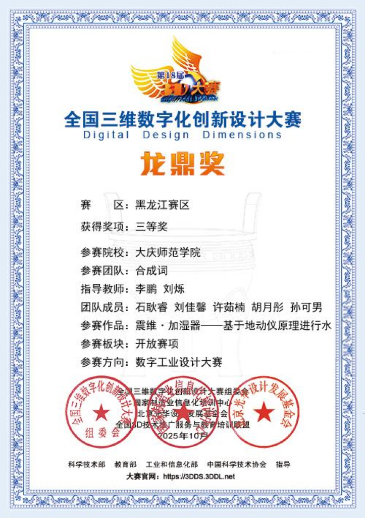 2025年第18届全国三维数字化创新设计大赛省赛三等奖
