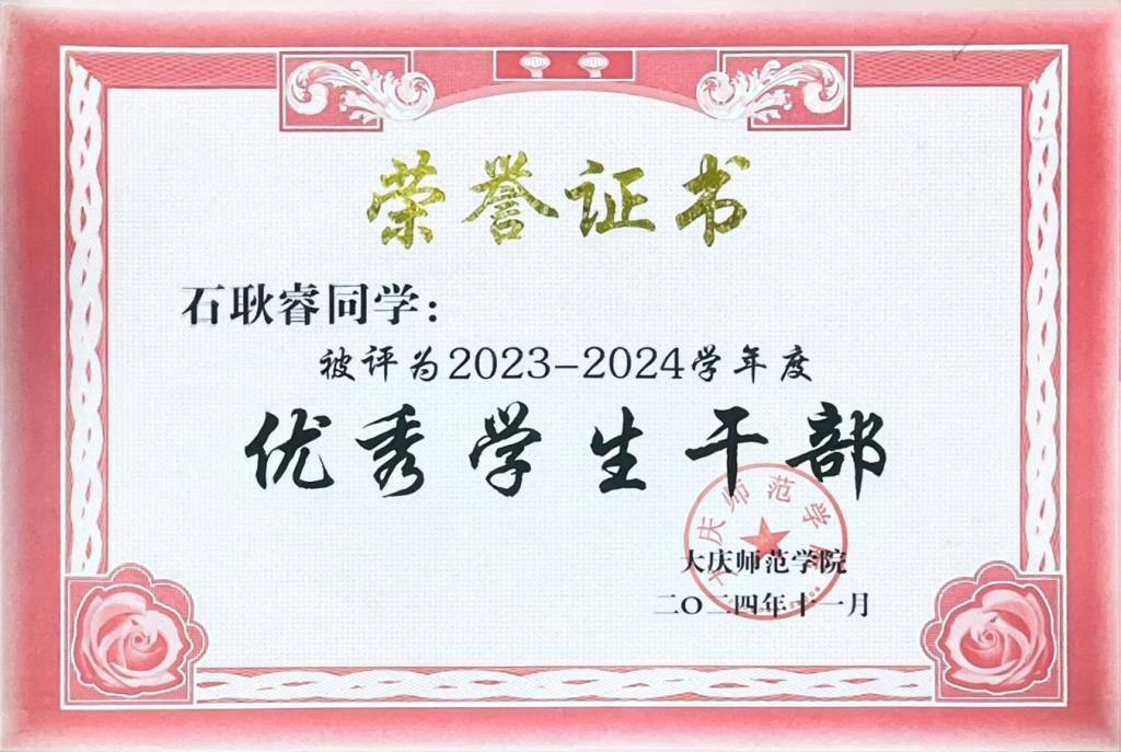 曾任校融媒体中心主席、中青网校园通讯站副站长、DMT社团社长。参与筹备黑龙江省第十七期“青马工程”培训班、大庆师范学院第一次团代会、红色文化月系列活动、主持人大赛、计算机科学与信息技术学院表彰大会等大型活动。 积极参加大庆师范学院第四期“青马工程”培训班,作为团员代表参加大庆师范学院第一次团代会,积极参与红色文化月活动、各类志愿服务活动,以及“三下乡”“返家乡”等社会实践活动,带领学生党员录制微党课系列视频。现在国内安防领域头部企业海康威视的创新业务板块杭州睿影科技有限公司进行实习。