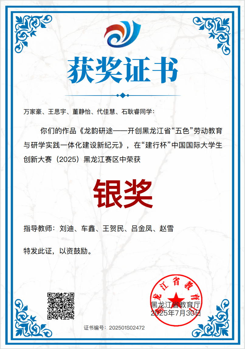 2025年“建行杯”中国国际大学生创新大赛省赛银奖