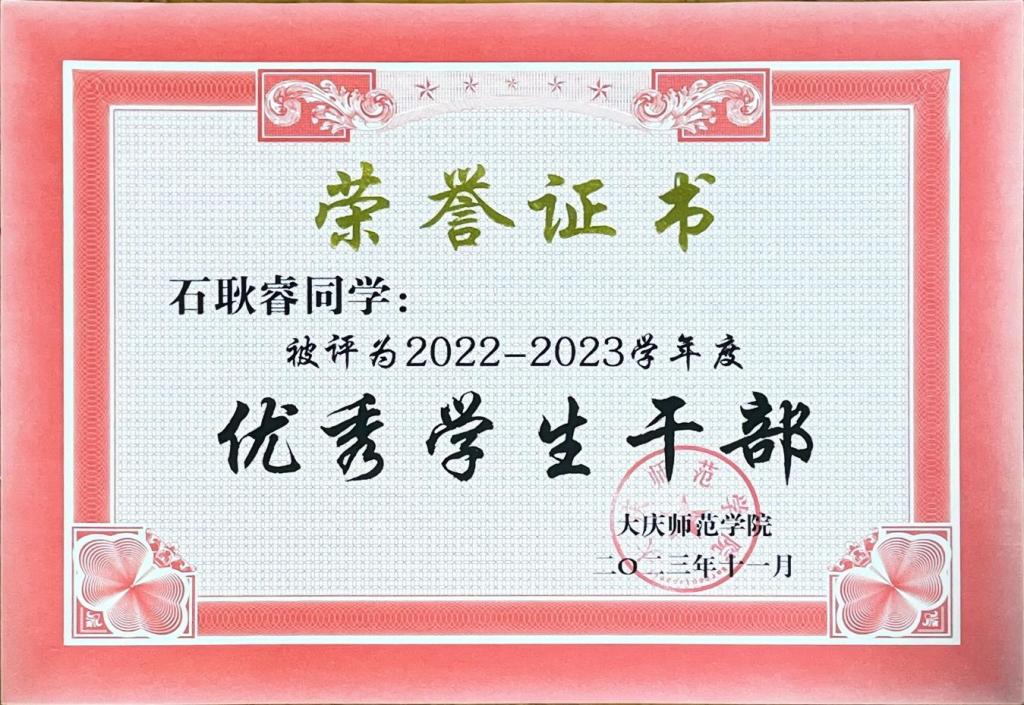 石耿睿,男,中共预备党员,2022级数字媒体技术专业一班学习委员。