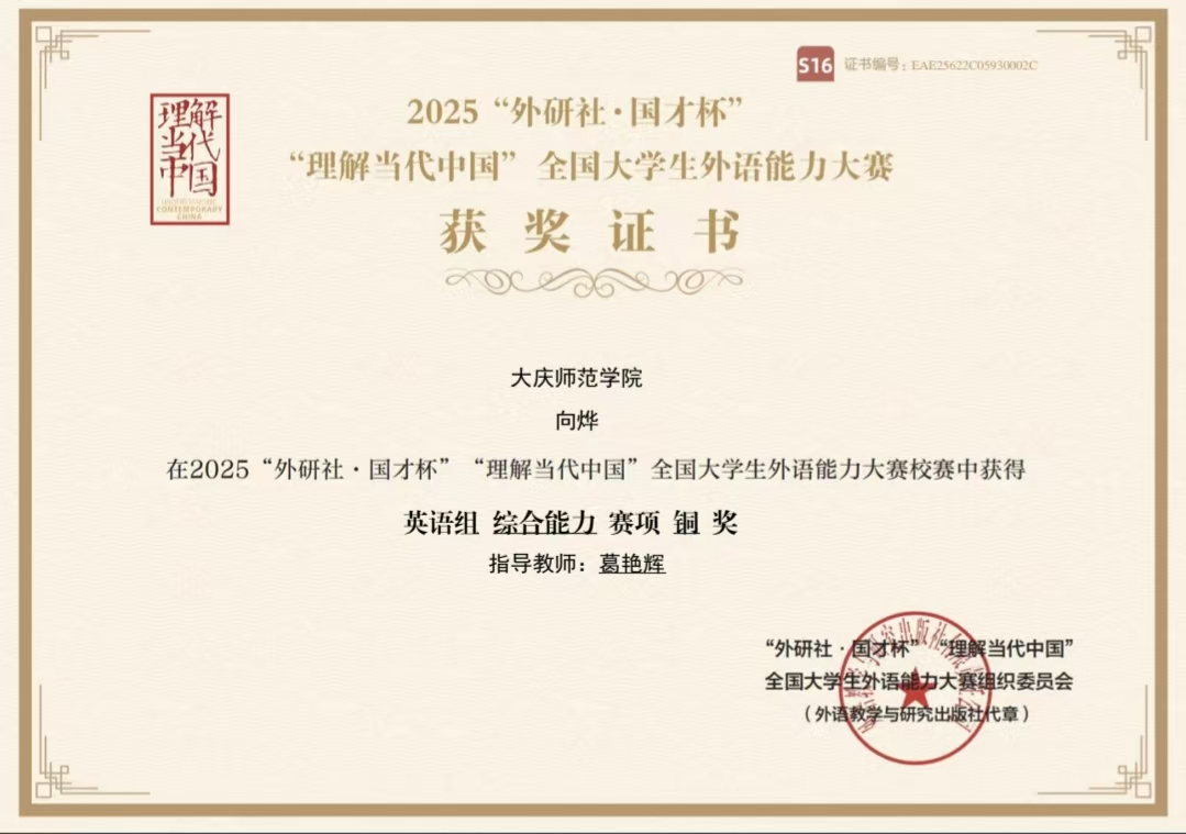 2025年“外研社·国才杯”校赛英语组综合能力赛项铜奖
