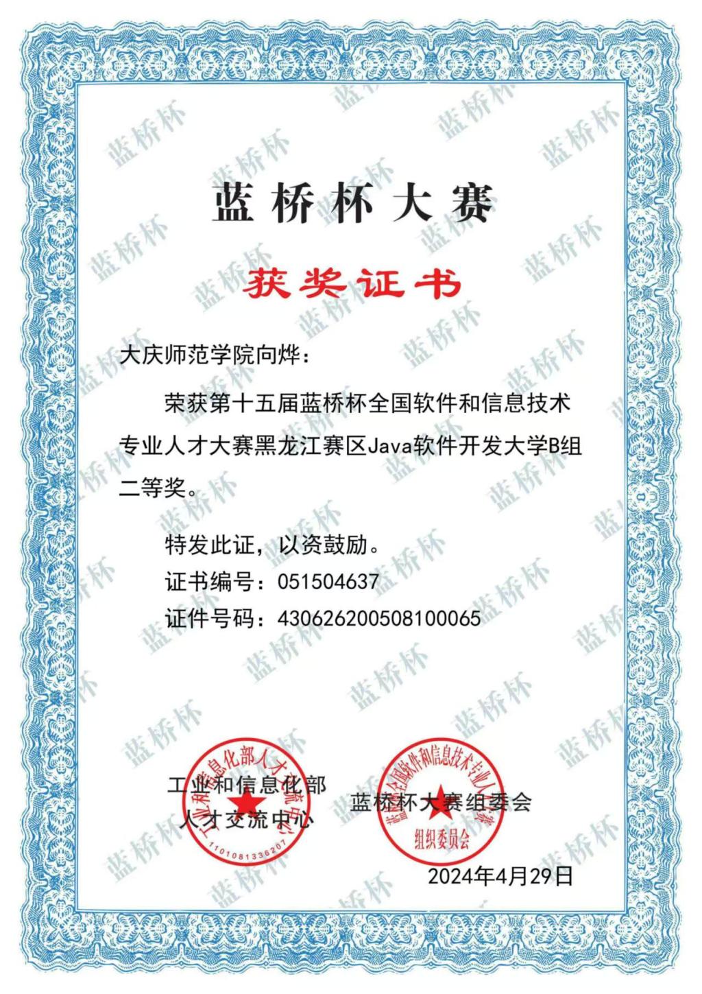 2024年第十五届蓝桥杯黑龙江赛区Java软件开发B组二等奖