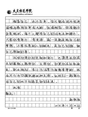 为深入推进家庭经济困难学生帮扶工作,构建心灵关怀长效机制,11月1日至30日,计算机科学与信息技术学院开展“笔友同行,筑梦未来”主题书信陪伴活动,以创新形式为学子们搭建起温暖的精神交流桥梁。