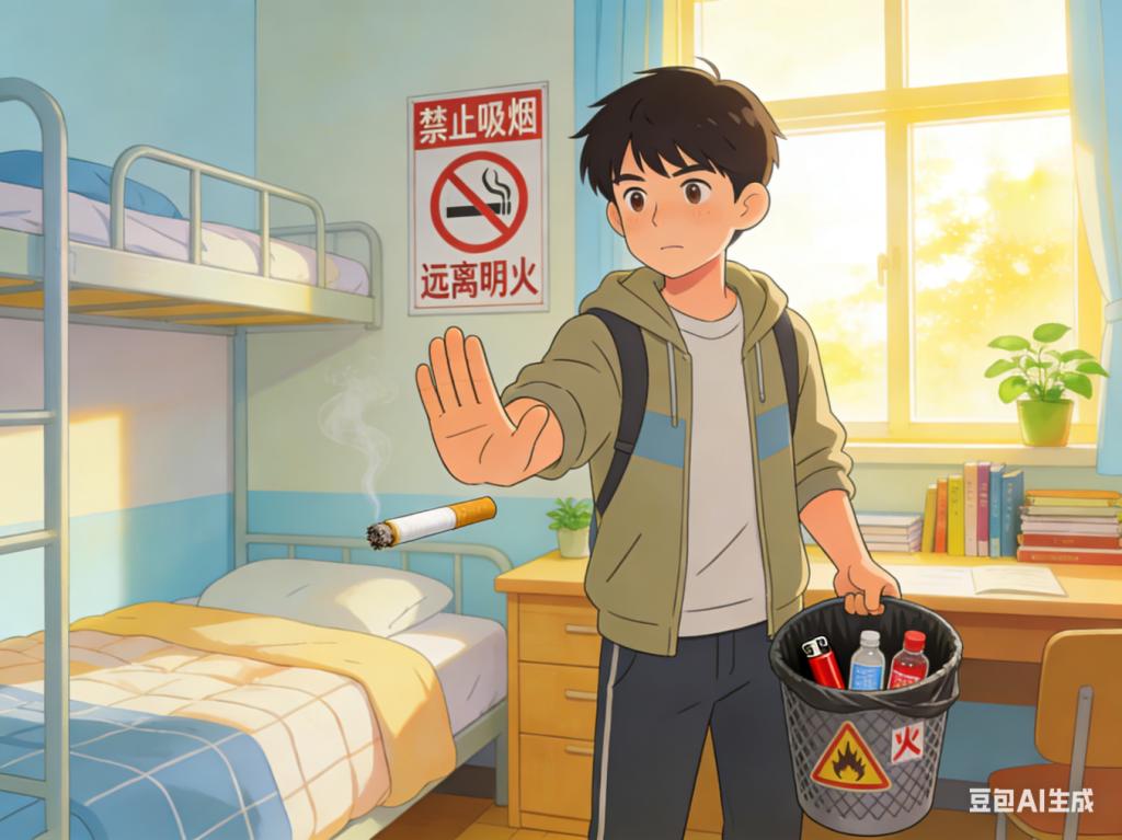 1.严禁在宿舍内吸烟、使用明火,不存放易燃易爆物品,筑牢消防安全第一道防线。