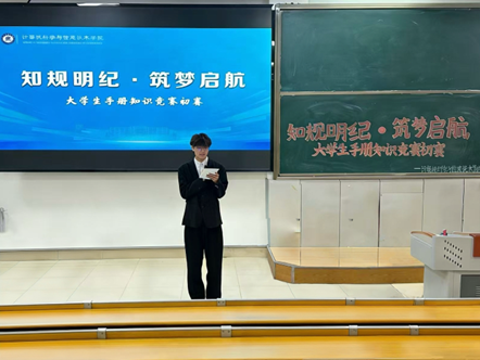 为强化校规校纪意识,选拔优秀学子备战校级知识竞赛,3月23日,计算机科学与信息技术学院在计算机楼113教室举办“知规明纪·筑梦启航”大学生手册知识竞赛初赛,共有31名计科学子踊跃报名参赛。