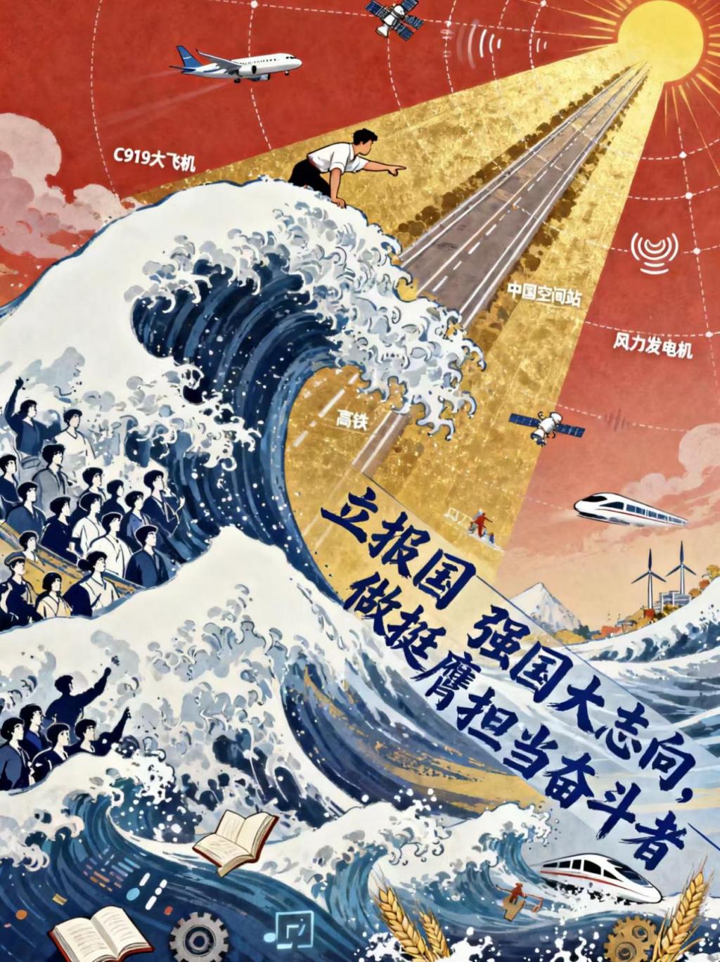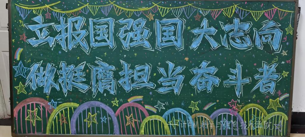 青春逢盛世,奋斗正当时。为深入贯彻教育部等七部门关于宣传教育的相关政策要求,筑牢学生的强国信念与担当精神,计算机科学与信息技术学院组织开展“立报国强国大志向 做挺膺担当奋斗者”宣传教育活动。本次活动整合板报绘制、班会、海报设计、征文、读书会五类育人形式,通过视觉艺术与思想碰撞传递信念、凝聚力量,助力新时代青年厚植家国情怀、砥砺奋斗之志、扛起使命担当。