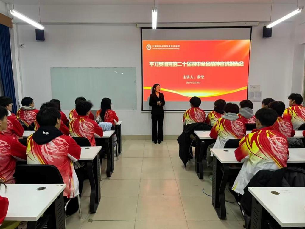 通过召开系列宣讲报告会,学院师生进一步深化了对党的二十届四中全会精神的理解与把握,统一思想、凝聚共识。全院上下将把学习成果切实转化为推动教育教学改革、学科专业建设、人才培养提质增效的强大动力。未来,计算机科学与信息技术学院将锚定高质量发展目标,在教育强国建设的征程中主动担当、积极作为,为培养更多担当民族复兴大任的时代新人持续贡献坚实力量。(一审:刘烁 二审:苏鸿鹏 三审:刘彰基)